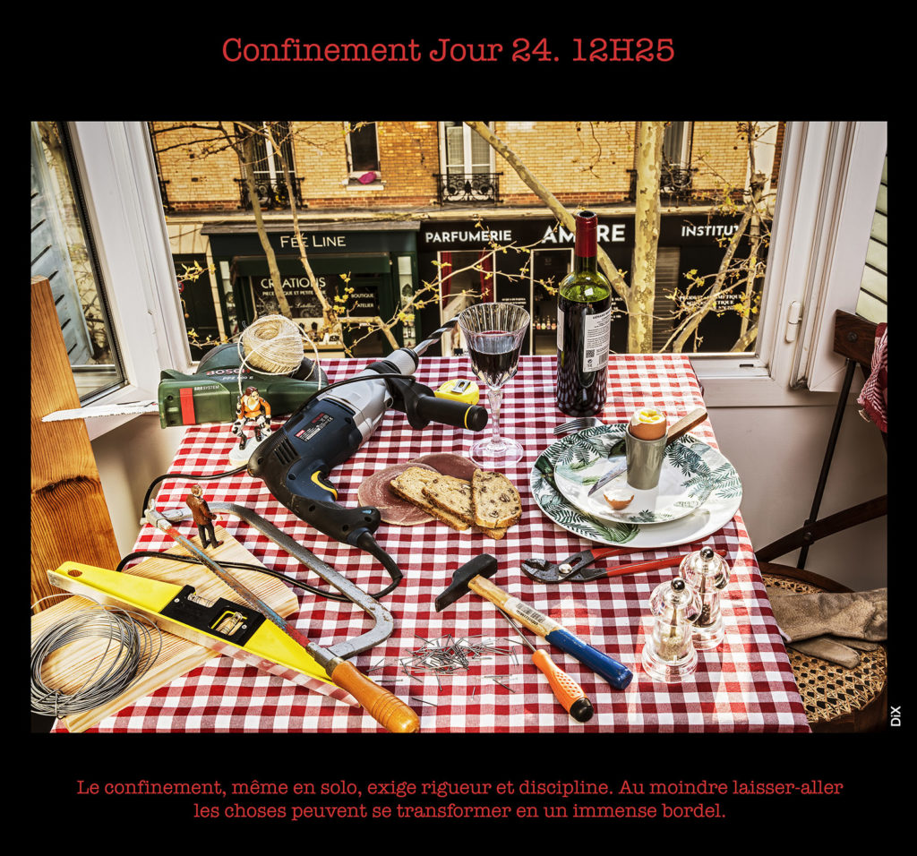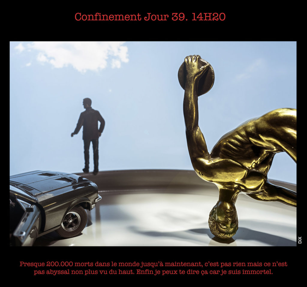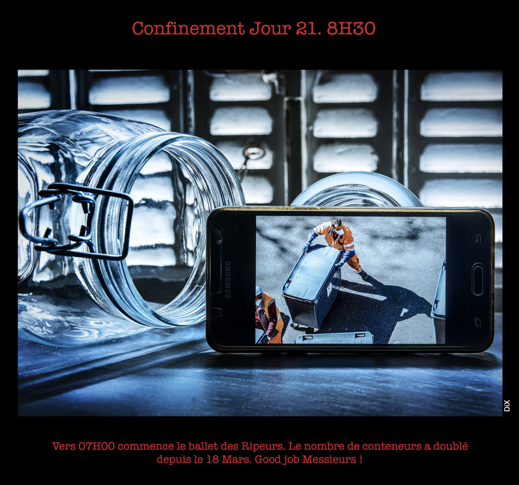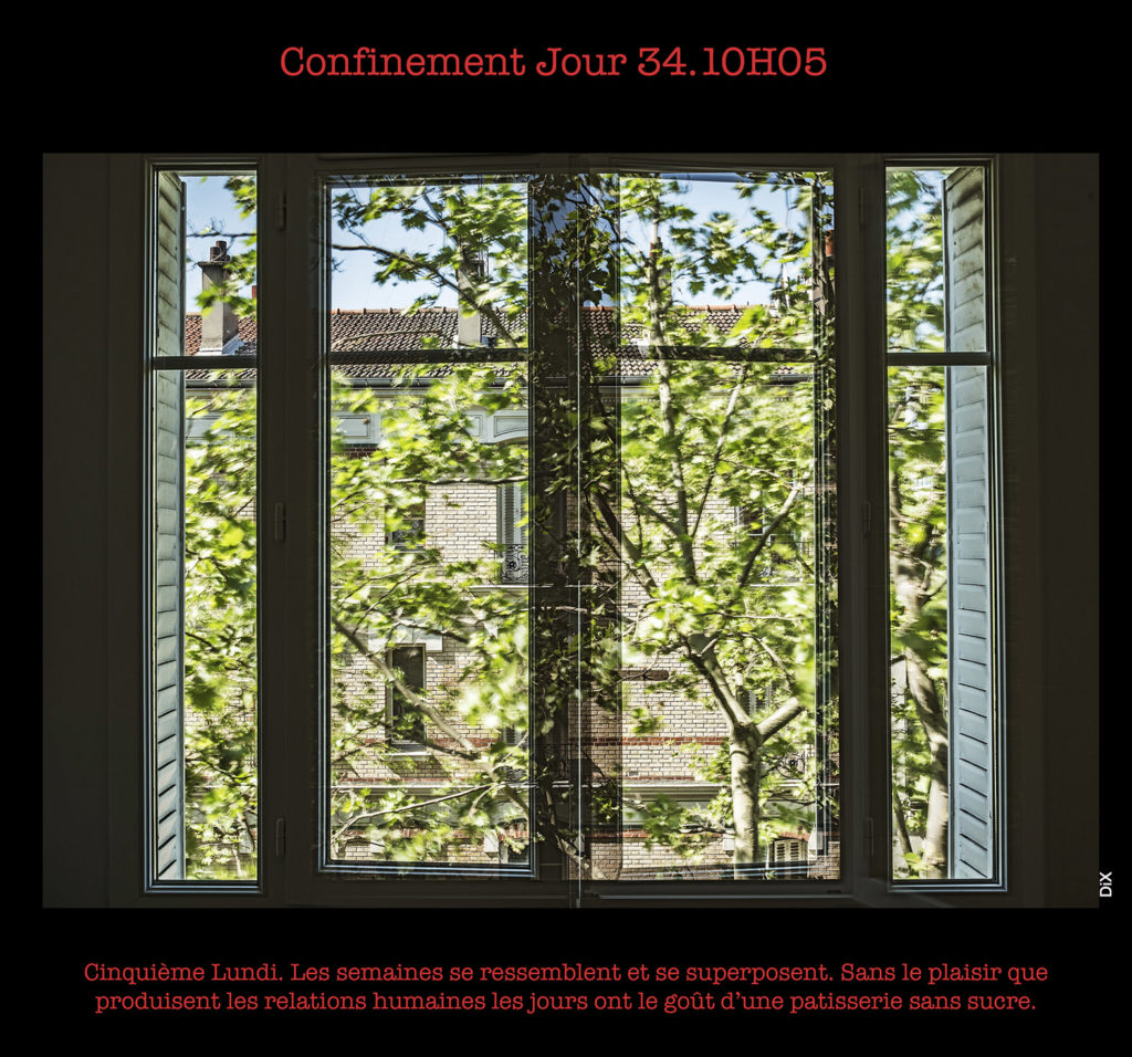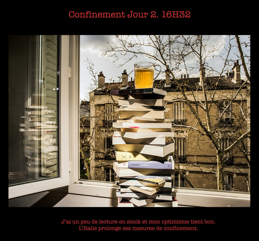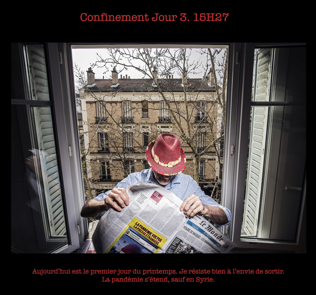 Le 18 mars 2020, confiné seul dans mon appartement, j’entreprends de réaliser chaque jour une photographie que j’accompagne d’un bref commentaire.